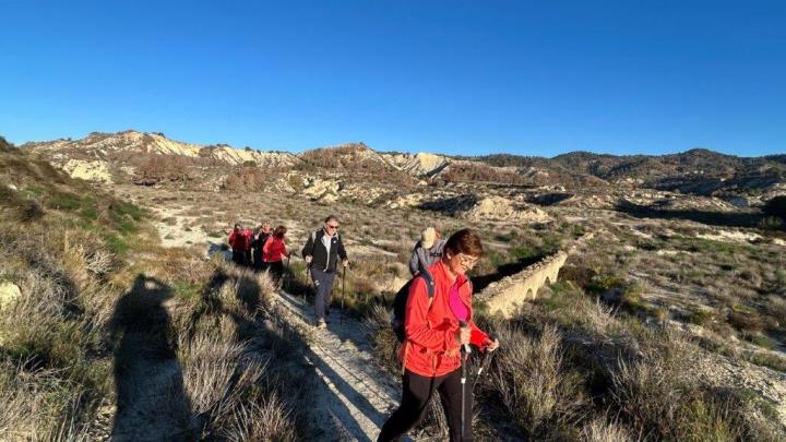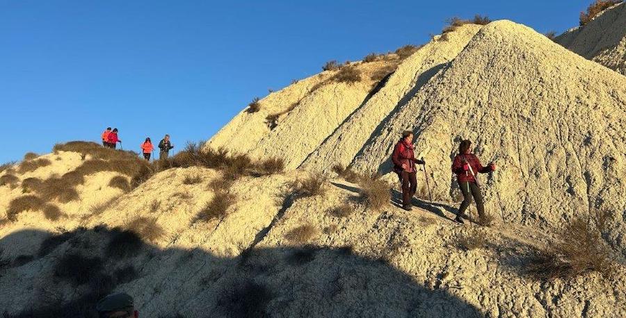 ... por una ruta menos exigente que las llevadas a cabo en fechas precedentes, siendo el recorrido por 'Los Badlands' del Puerto de la Cadena, para terminar en un almuerzo de hermandad entre los participantes del colectivo senderista de La Unión.