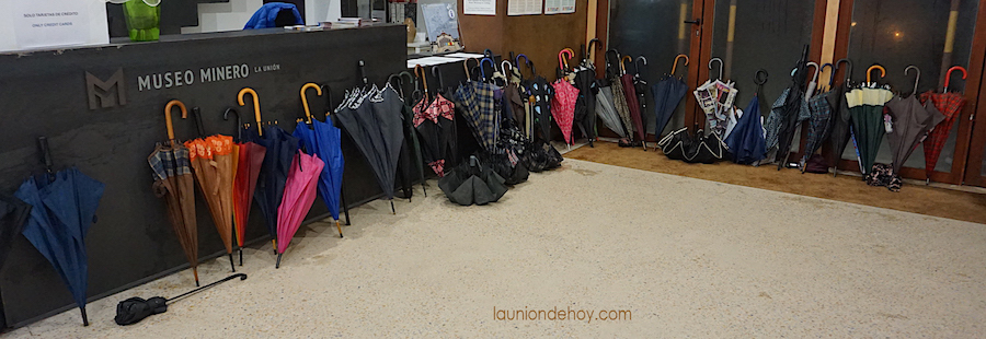 La curiosa imagen está tomada durante la celebración el pasado sábado del festival de bandas de música celebrado dentro de un fin de semana de tiempo muy desapacible que provocó una exposición extra en el Museo Minero.