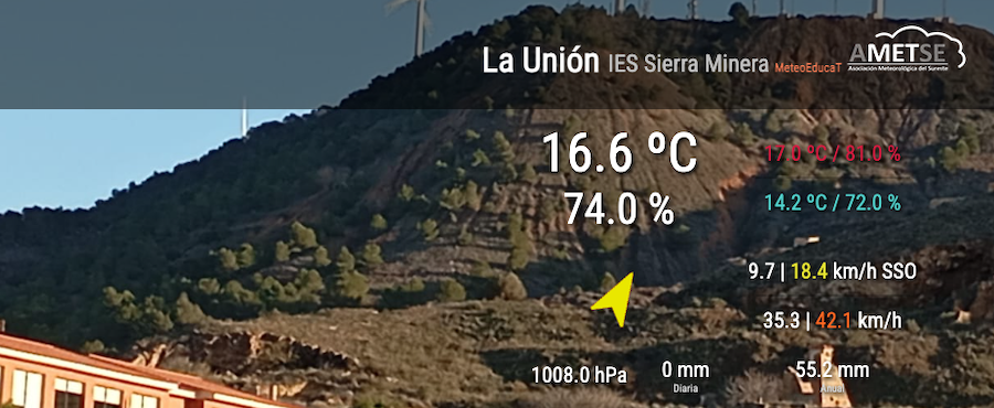 Ametse instaló hace unos cien días una nueva estación climática sobre el IES Sierra Minera, que ya está en pleno funcionamiento y se ha incorporado a la red meteorológica de la asociación, permitiendo conocer en cada momento las condiciones que el tiempo ofrece en este enclave.