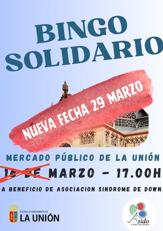 La 'Asociación para la atención integral de las personas con síndrome de Down de Cartagena y sus familias' informa que, por circunstancias ajenas a la entidad, no podrán celebrar la lotería familiar solidaria este domingo y se traslada al sábado 29 de marzo a las 17 horas, también en el Mercado Público.