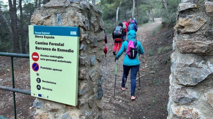 A continuación, se inicia la ruta cruzando el cauce del barranco de Enmedio, continuando por pista hasta llegar a la casa forestal construida en 1897 (o casa de Don Blas). Tras las fotos correspondientes, el grupo unionense de senderistas sigue hacia la casa forestal de La Carrasca, donde sus componentes reponen fuerzas, no sin antes ver la placa que hay en su fachada donde se hace constar la nevada de cuatro días seguidos, 16, 17, 18 y 19 del año 1806 en el mes de abril, que ocasionó la muerte de 33, yeguas, salvándose el ganado cabrio, gracias a un claro de dos horas el día 18.