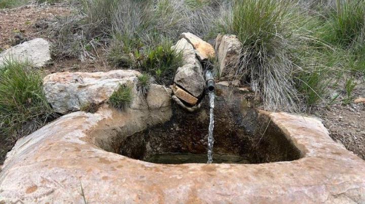 ... en dirección al caserío del Purgatorio, en Sierra Espua, una vez que las lluvias han terminado, por ahora, siendo el barranco de Enmedio, las casas florestales, el collado del Pilón y el agua de los manantiales que brotan por las minas alicientes en esta primera ruta primaveral de 2025.