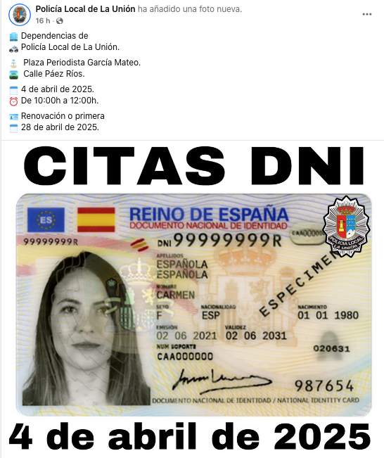 La Policía Local informa que el equipo móvil de la Comisaría de Policía Nacional estará en la sede del cuartel del 092 de La Unión los viernes 4 de abril, de 10 a 12 horas, y 28 del mismo mes.