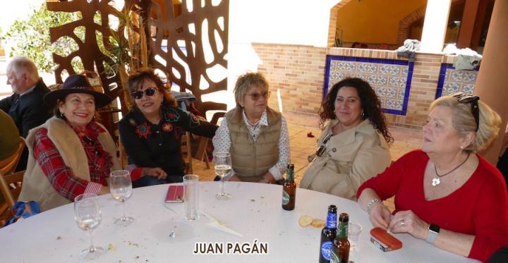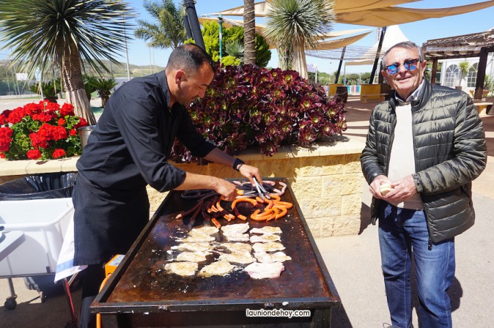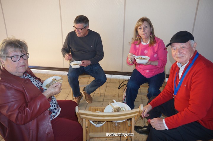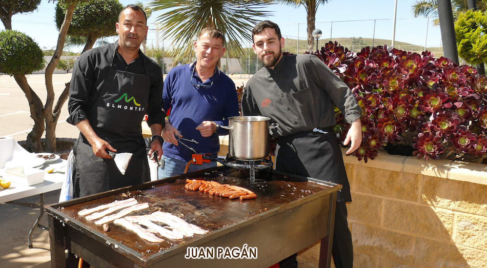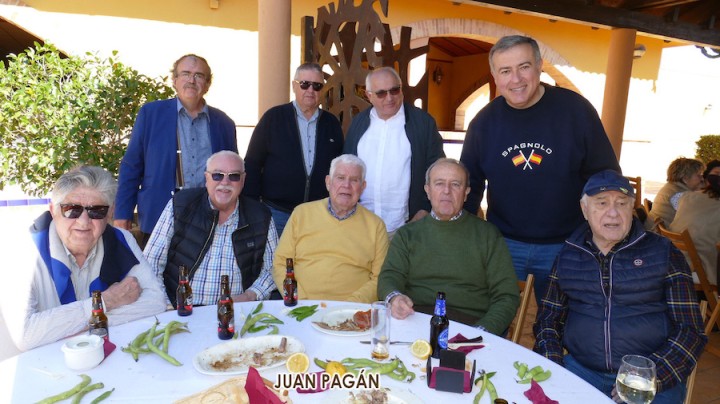 Fue un acierto la fórmula de organizar la convivencia si estar sujetos a posiciones fijas de mesa, pues así las conversaciones se alternaban entre unos y otros aderezadas por esos manjares gastronómicos, siendo las habas y los pésoles (guisantes) los que recibieron a los participantes junto a pan con sobrasada sabrosa, como también resultaron los productos que después iban llegando procedentes de una barbacoa que cuidó mucho que longanizas, lomos y pancetas estuvieran en su punto, a lo que sumaron las hervidas morcillas y una exquisita careta de cerdo. Ahí no terminaron las propuestas de ingesta alimentacia, pues aún faltaban los plato de habichuelas con cerdo y de arroz obtenido de las dos paelleras que se activaron en la jornada.