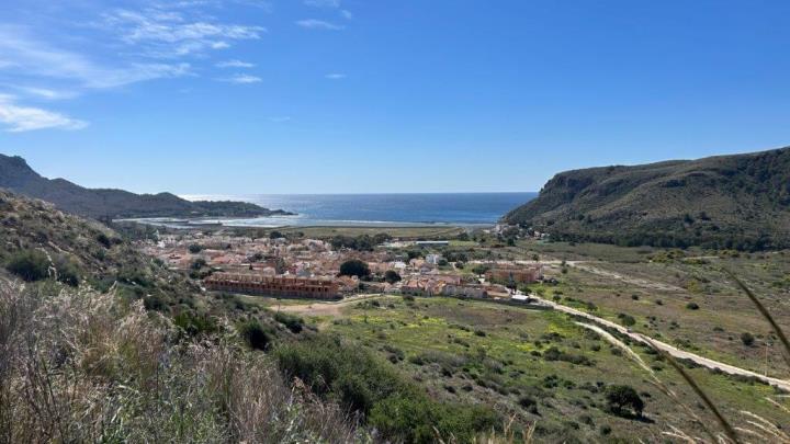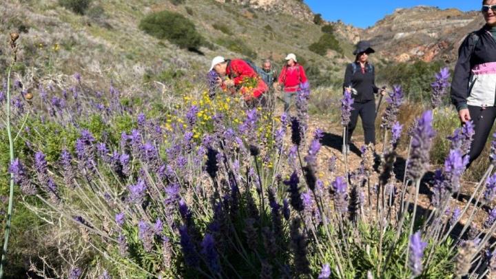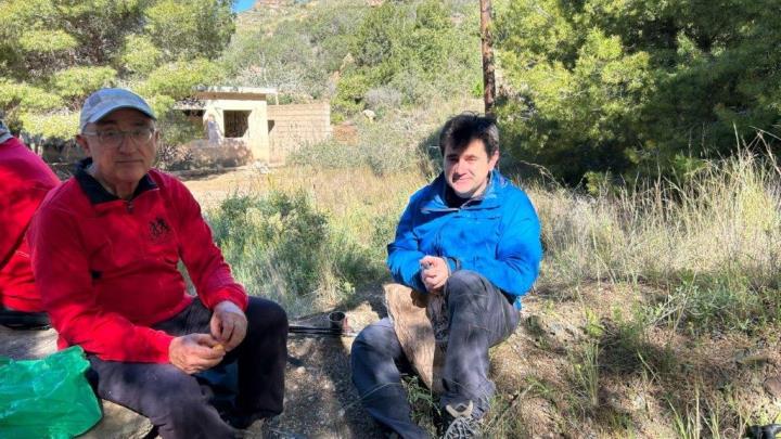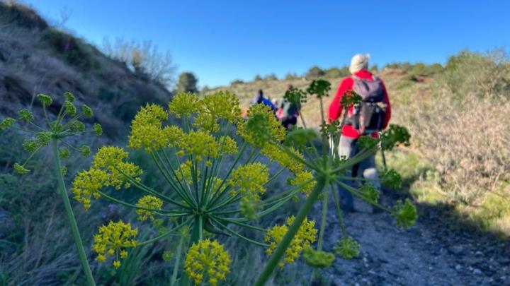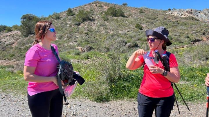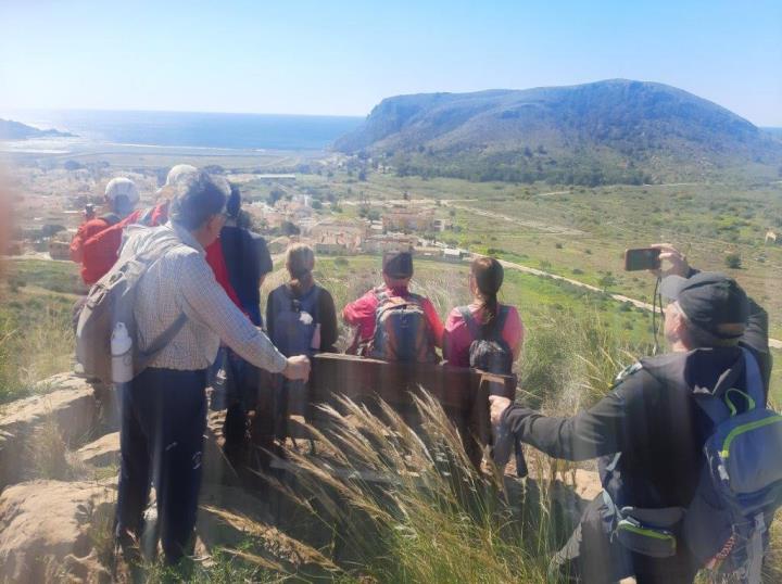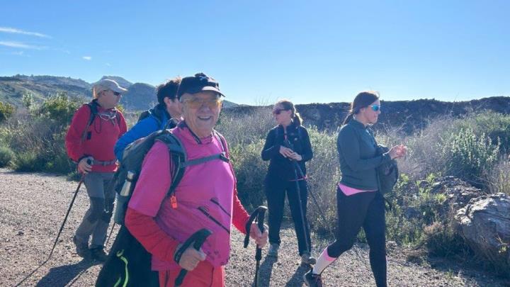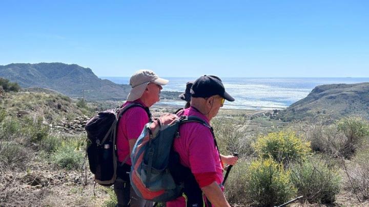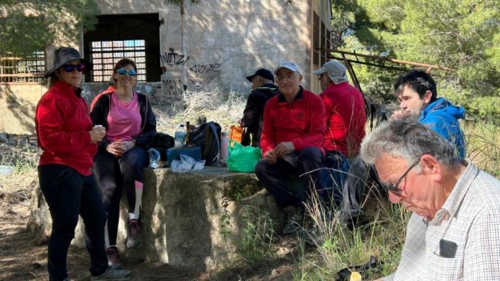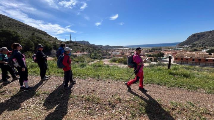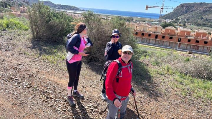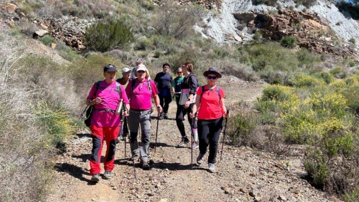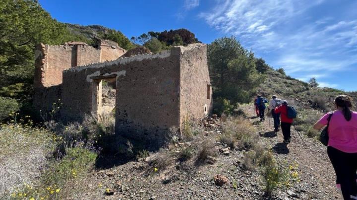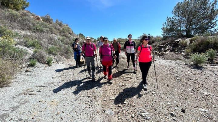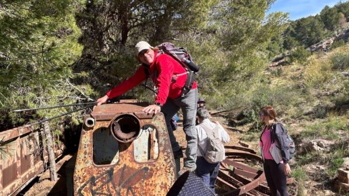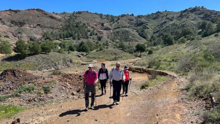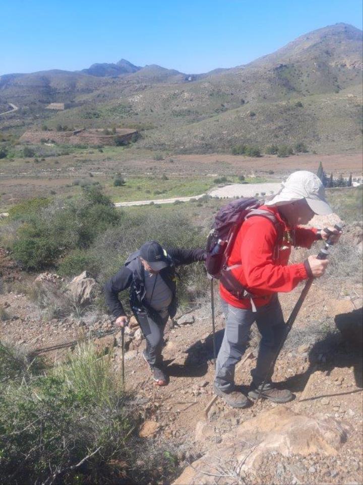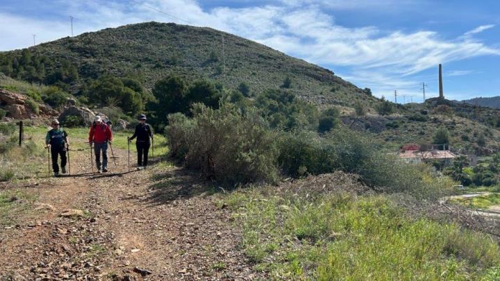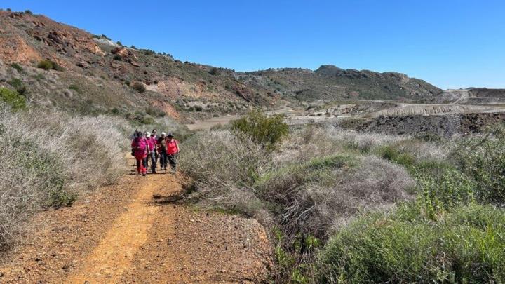 ... en una soleada y bonita mañana que el grupo senderista unionense inició en la ciudad de La Unión con dirección hacia Portmán subiendo por la cuesta de Las Lajas, pasando junto al cementerio y a las vagonetas del abandonado tren minero, donde se reponen fuerzas para volver hacia el camposanto y una vez allí coger el sendero de La Paloma.