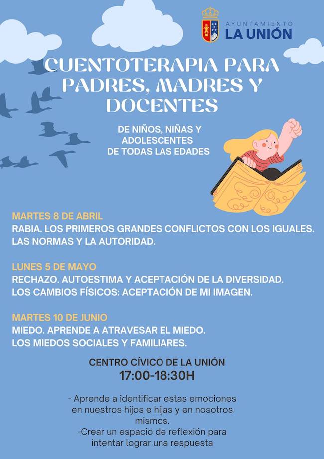 Dirigido a padres y docentes de chavales de todas las edades, las sesiones se van a desarrollar desde este martes por la tarde en el centro cívico de la calle Real de La Unión, siendo las segunda y tercera jornada los días 5 de mayo y 10 de junio, respectivamente.