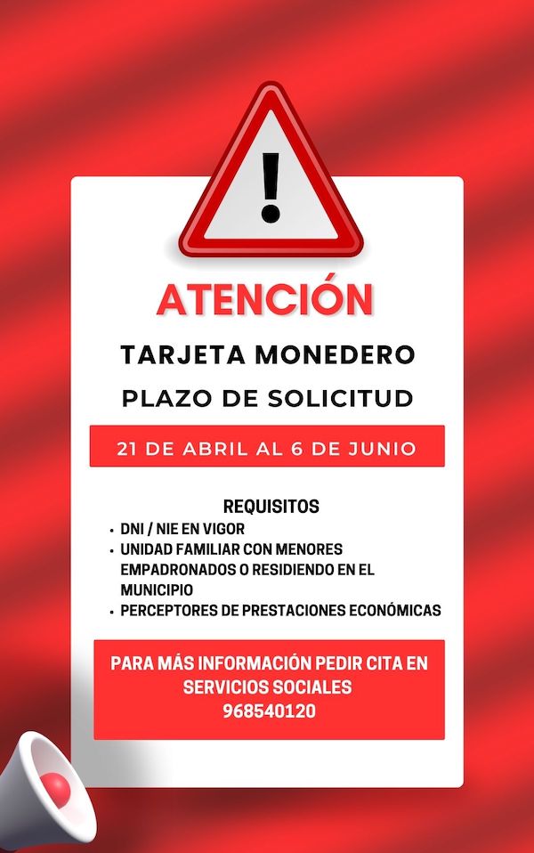 Servicios Sociales de La Unión informa a las familias que la necesitan que, desde la Comunidad Autónoma, han indicado que el plazo de solicitud comenzará dentro de dos lunes y que expirará el 6 de junio.