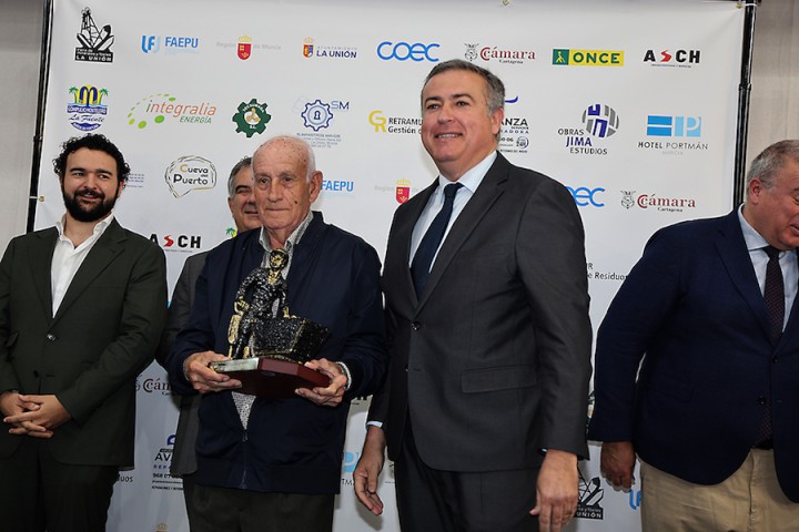 El acto de inauguración ha contado con la presencia del alcalde de La Unión, Joaquín Zapata García; el consejero de Medio Ambiente, Universidades, Investigación y Mar Menor, Juan María Vazquez; y el presidente de FAEPU y presidente de la feria, Carlos Fernando Bernabé Pérez siendo un capítulo destacado el homenaje al minero, reconocimiento que este año ha recaído en la persona de Antonio Pleguezuelos Martínez, de 81 años de edad, que empezó su a trabajar en las minas a los 18 años como peón, cargando vagonetas bajo las entrañas de la tierra y que gracias a Dios, nos decía, no había contraído la enfermedad del minero, la silicosis. Le entregaban las placas de reconocimiento a su vida de minero, la presidenta de COEC, Ana Correa, y el vicepresidente de la Camara de Comercio, Andrés Ayala, y el presidente de la feria y los empresarios unionenses, además de también vicepresidente de COEC, Carlos Fernando Bernabé.