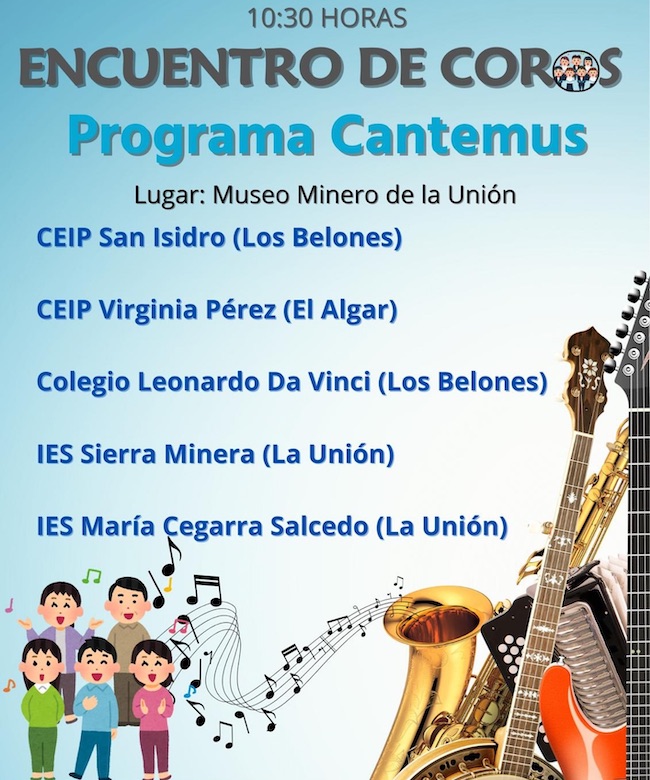 El Museo Minero de La Unión acogerá el 30 de abril por la mañana el encuentro de coros 'Cantemus' con participación de alumnos de los institutos locales Sierra Minera y María Salcedo, de los colegios San Isidro y Leonardo da Vinci de Los Belones y del CEIP Virginia Pérez de El Algar.