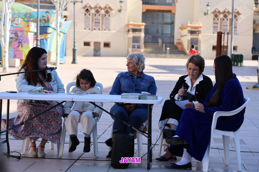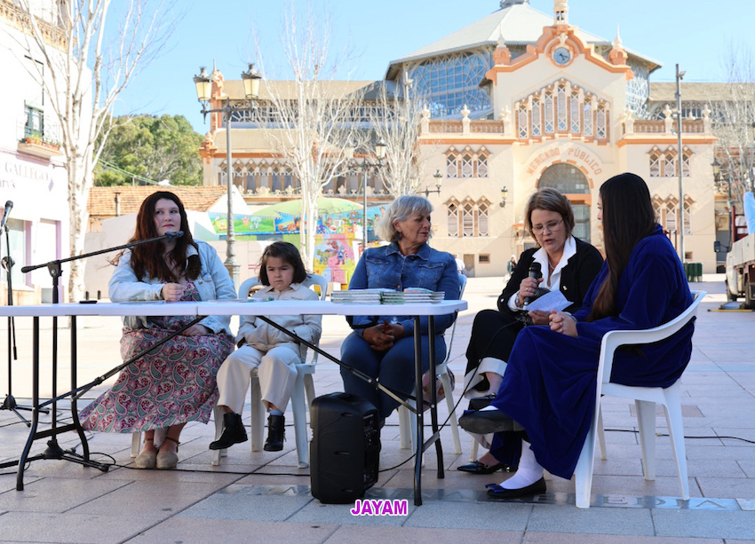 Dos de sus muchos nazarenos , participaron en el coloquio donde transmitieron los que significa para ellas esa procesión. La autora animo a todo el público a participar de la lectura del libro. Hubo también un hueco para el cante más jondo de nuestra tierra con el cante de Sebas Andreu. El coloquio fue presentado por la concejala de festejos, Loly Mendoz, en un marco inigualable con el Mercado Público de fondo, nuestro cante y una obra tan fantástica. Una forma de acercar la literatura a jóvenes y mayores, y de poner en valor nuestras raíces a través de la palabra escrita. Porque en La Unión también se escribe, se lee y se comparte.