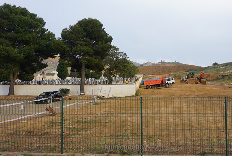Las máquinas llevan varios días trabajando junto al cementerio de La Unión dentro de las labores de recuperación de superficies degradadas de la sierra minera, en actuación del Ministerio para la Transición Ecológica y el Reto Demográfico (MITECO).