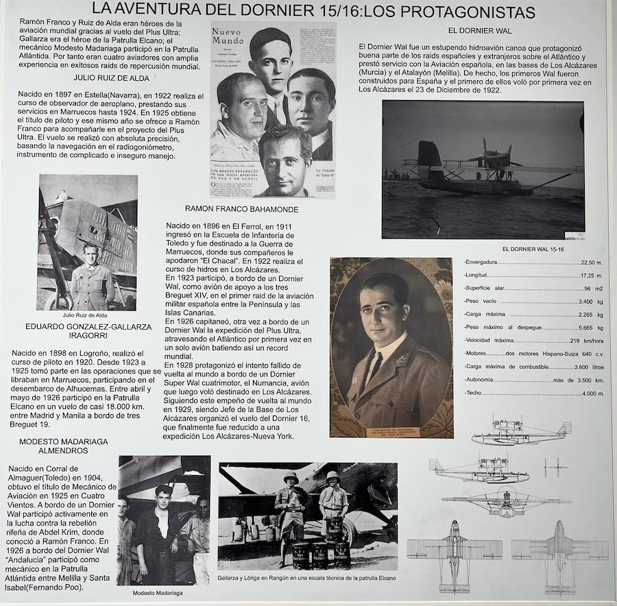 El 21 de Junio de 1929 los aviadores Ramón Franco, González Gallarza, Ruiz de Alda y Modesto Madariaga despegaron del aeródromo de Los Alcázares a bordo de un 'Dornier Wal' con destino a Nueva York para batir el record de distancia recorrida en hidro (3.300 kilómetros), pero la aventura pasó a odisea cuando, por diversas circunstancias, se encontraron los cuatro tripulantes náufragos en medio del Atlántico alejados de todas las rutas marítimas. La prensa de todo el mundo relató con angustia las noticias de la búsqueda del avión durante los 7 días que permanecieron a la deriva.