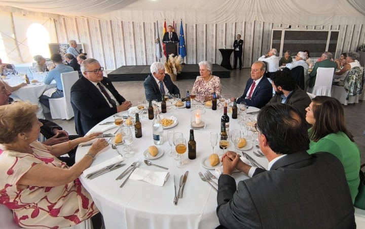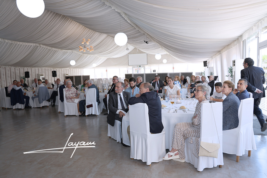 La comida estuvo compuesta por una ensalada marinera con salsa césar, alcachofas gratinadas con foie y virutas de jamón, media dorada a la espalda con gulas y gambas y carrillada de cerdo estofada , todo maridado con vino crianza Denominación de Origen Calificada Rioja viña Pomal . Como postre ser sirvió una tarta tiramisú finalizando con una copa de cava Brut Nature que todos aprovecharon para brindar por el premiado. A continuación se habilitó una barra y el DJ Raúl Oliveira procedió a 'pinchar' música que puso a los asistentes a bailar.