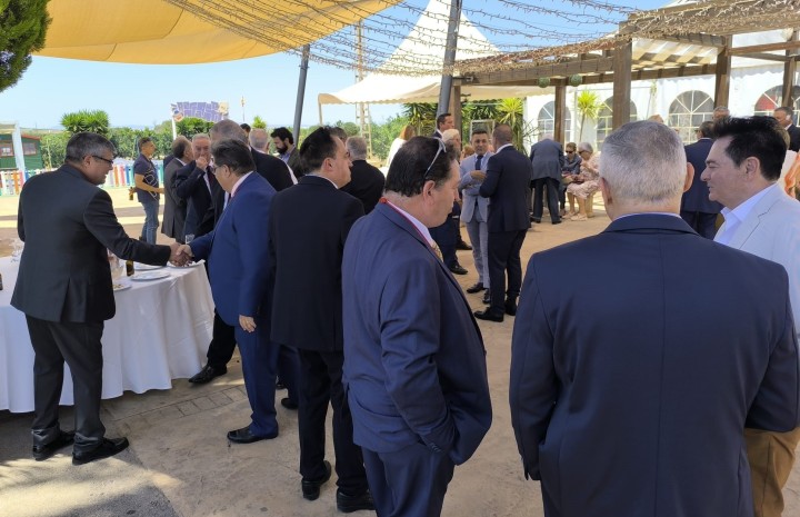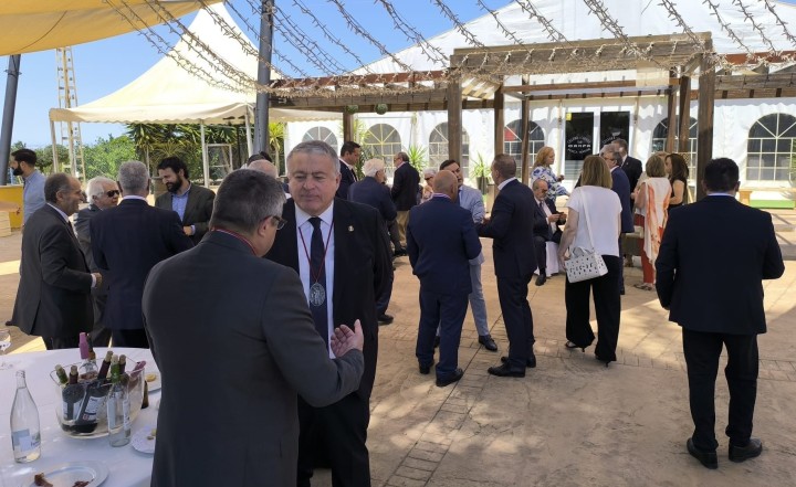 En el evento, celebrado en el Restaurante Finca Mayor , los asistentes fueron recibidos con un aperitivo consistente en jamón ibérico al corte acompañado con pan tostado y tomate, queso parmesano con almendras, brochetas de pollo con teriyaki y tornado de langostino .