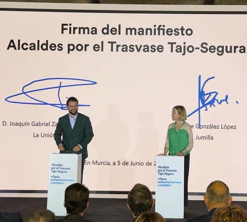 El alcalde de La Unión, Joaquín Zapata, ha participado en el acto celebrado en defensa del Trasvase Tajo-Segura, donde más de 80 alcaldes de la Región de Murcia, Alicante y Almería, así como representantes de la sociedad civil han respaldado con su firma un manifiesto en defensa del agua como recurso esencial.