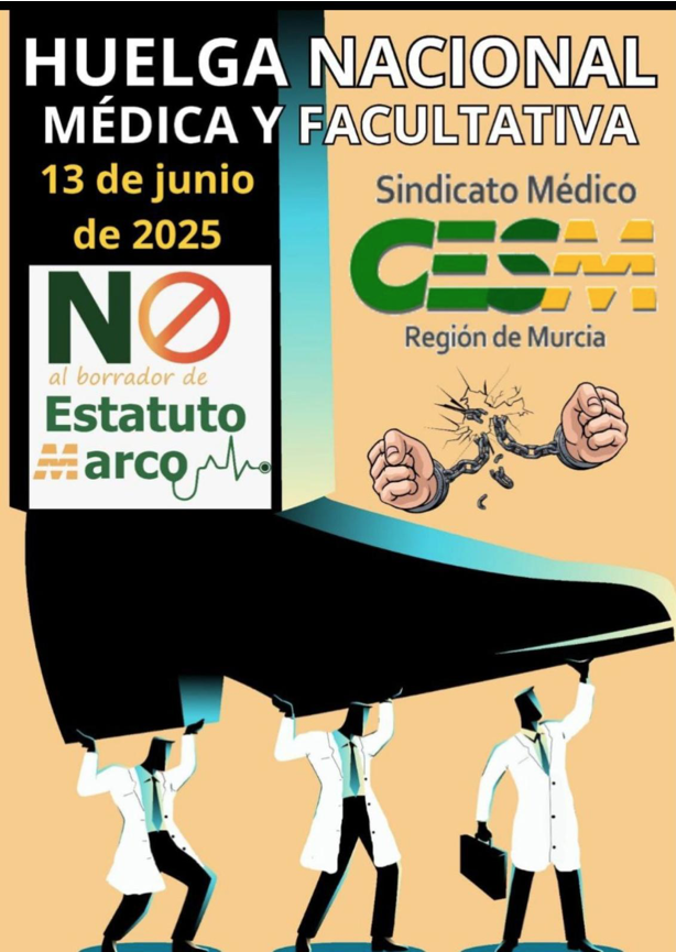 El Sindicato Médico de la Región de Murcia (CESM), con el apoyo del Colegio de Médicos de la Región de Murcia, convoca concentraciones simultáneas de los facultativos en servicios mínimos a puertas de los centros sanitarios para visibilizar la jornada de huelga del 13 de junio de la profesión médica española contra el documento.
