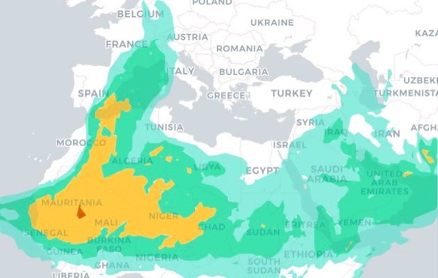 Alertan de una prolongada intrusión de polvo sahariano