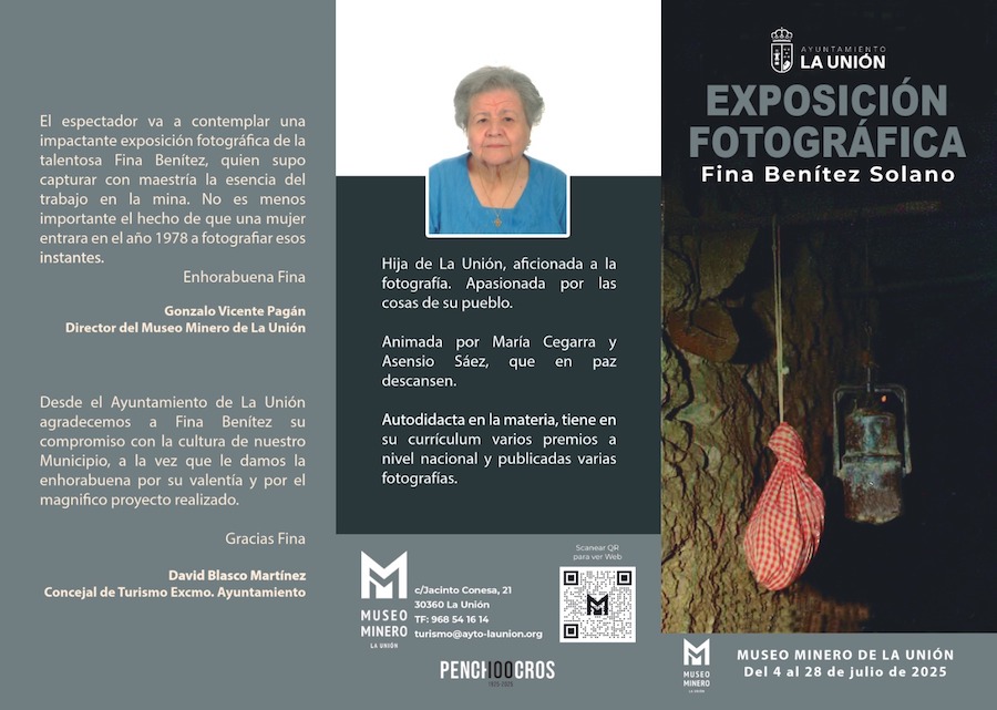 El Museo Minero de La Unión acogerá el 4 de julio la inauguración de una exposición fotográfica protagonizada por una mujer que aúna con gran fuerza el amor por su tierra y la afición hacia la fotografía. Vamos a contemplar una impactante muestra de escenas que supo capturar con maestría para captar la esencia del trabajo en la mina. Fue en 1978 cuando se adentró, época en la que no era normal la presencia femenina en las entrañas de la tierra.