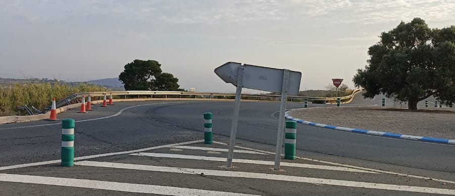 La redonda situada en la carretera que une Cartagena y La Unión ha registrado en los últimos días dos llamativos accidentes. En uno de ellos, un turismo se metió entre las oliveras del espacio central. El otro ha sido una muy fuerte colisión que ha desplazado y partido el guardarraíl.