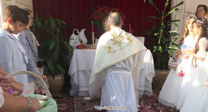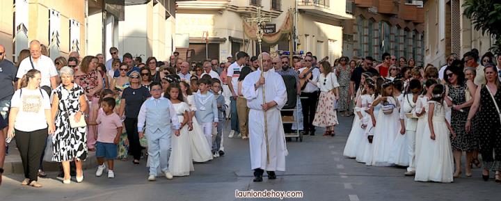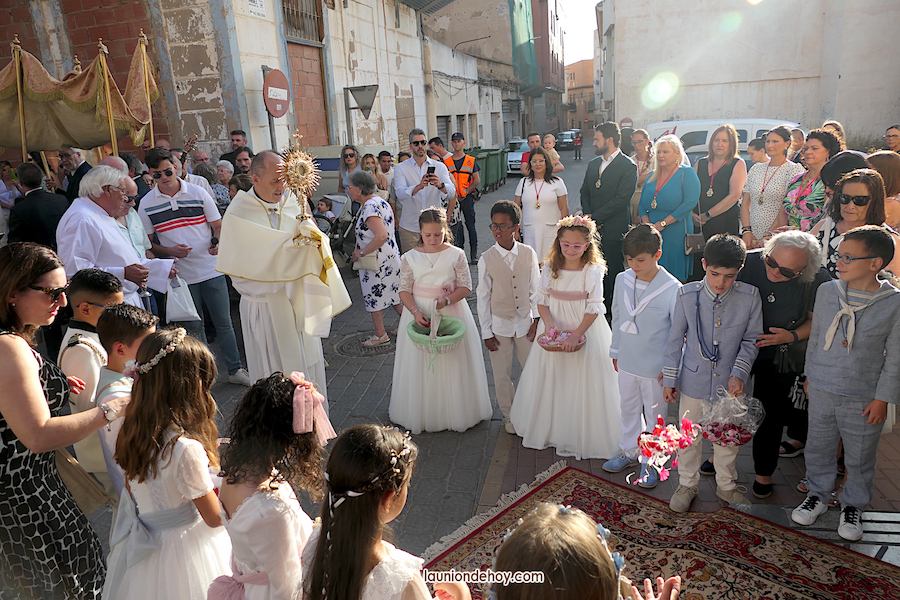 La cifra corresponde a los chavales que han tomado la primera comunión este año en La Unión y que han formado parte de la procesión del 'Corpus Christi', con nuevo recorrido, transitó entre las dos iglesias urbanas efectuando paradas en cinco altares.