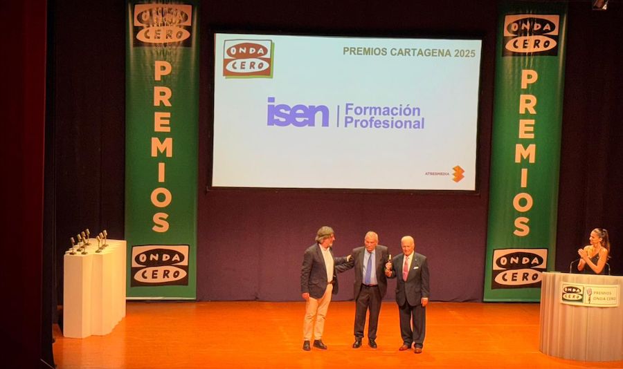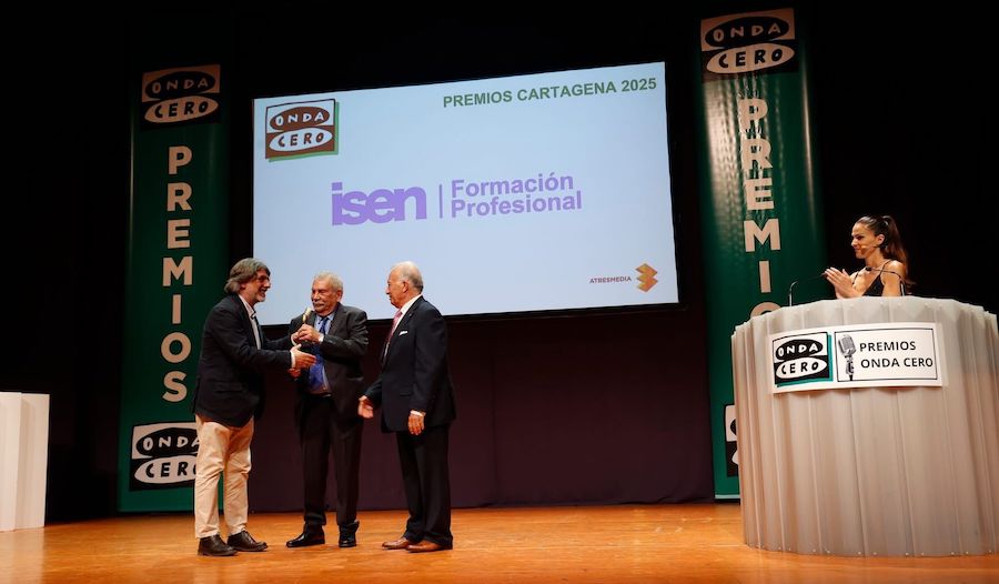 El unionense Emilio Ruiz Navarro, a la derecha del lector en la foto adjunta, y José Manuel Marín Garre recogieron como directivos de la asociación de antiguos alumnos de la 'Escuela técnica de aprendices de Bazán', que este año celebra su centenario, el premio concedido por Onda Cero Cartagena en la categoría de Educación.