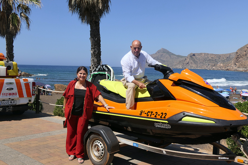 Esta mañana la primera teniente de alcalde, Isabel Egea, y el concejal Damián García, de VOX, han inaugurado un nuevo servicio público en la playa de Portmán que era muy demandado por los bañistas.