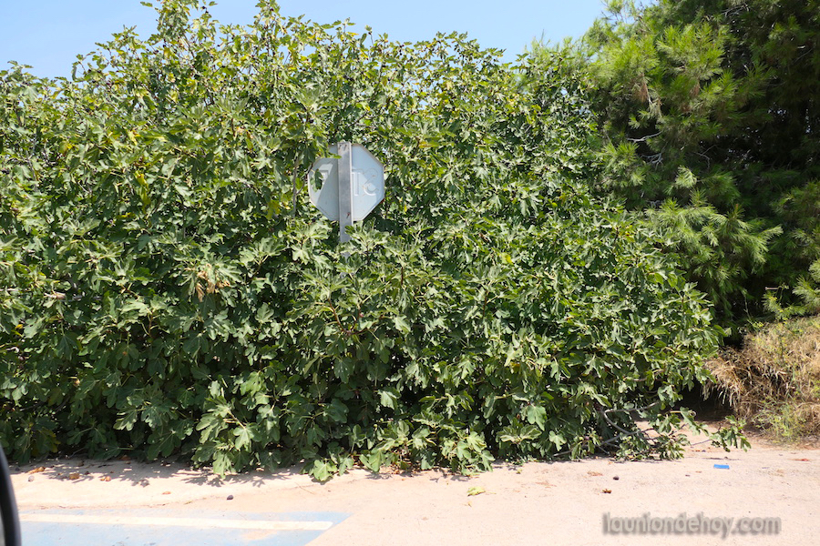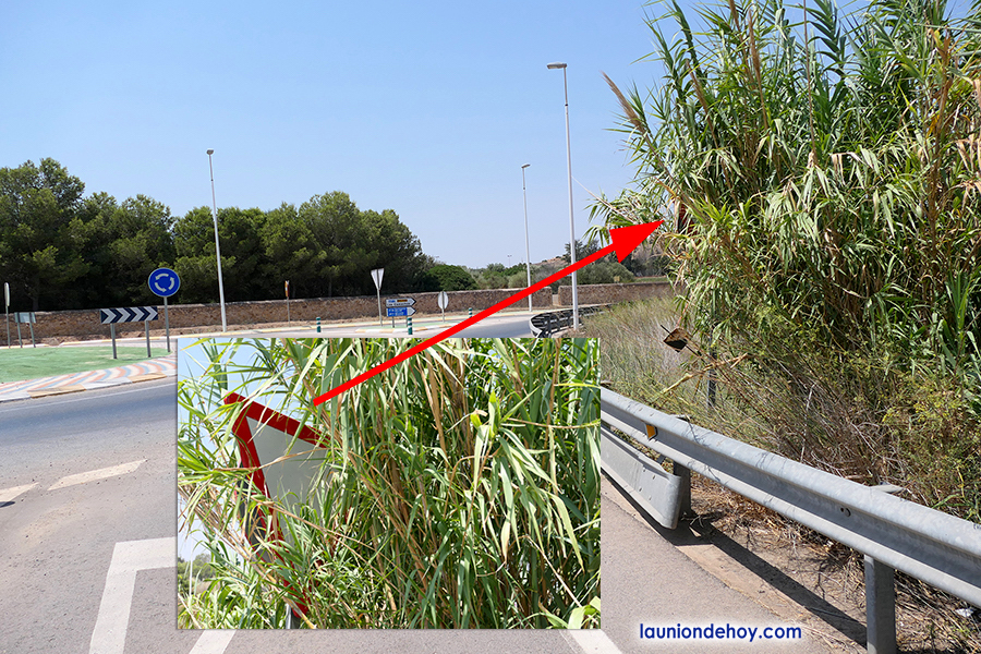 Un recorrido por la avenida Pío Wandosell, en la carretera RM-F40, permite contemplar escenas muy curiosas de cómo señales de tráfico es imposible ser vistas por los conductores al estar tapadas por la vegetación.