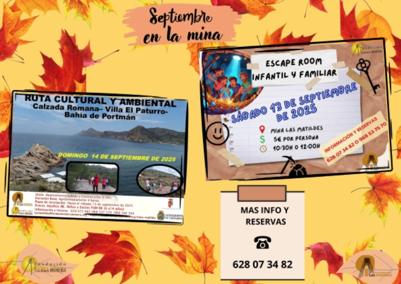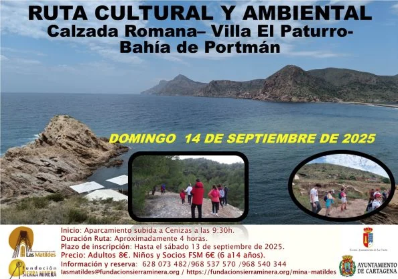 La Fundación Sierra Minera, desde el Centro de Interpretación de la mina 'Las Matildes' ha programado dos interesantes actividades para este mes, entre las que figura la ruta cultural y ambiental por la calzada romana, villa El Paturra y bahía de Portmán para el domingo de la próxima semana. Antes, el sábado, habrá 'un juego de fuga' infantil y familiar.