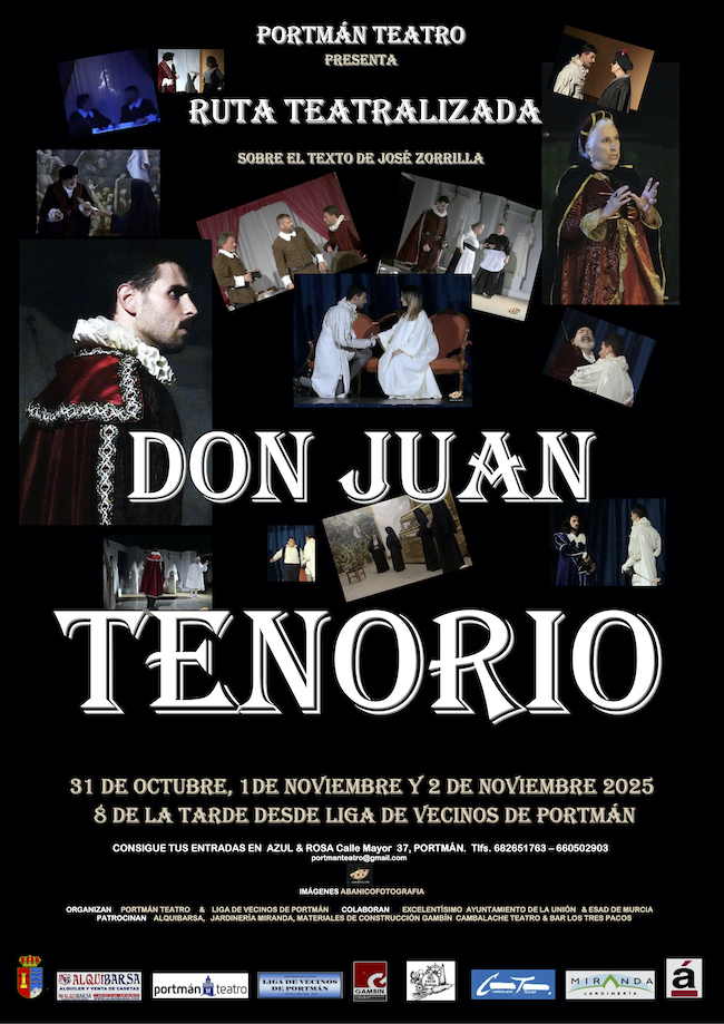 La ruta teatralizada del clásico de José Zorrilla, que tiene como protagonistas a don Juan y a doña Inés y que con gran éxito desarrolló Portmán Teatro en 2024, ofrecerá este año tres representaciones del 31 de octubre al 2 de noviembre con salida desde la Liga de Vecinos de Portmán y recorrido por diferentes enclaves del costero pueblo, aderezado por escenas fantasmagóricas. Entradas a la venta. Aforo limitado.
