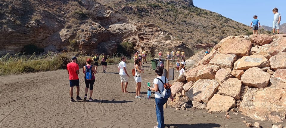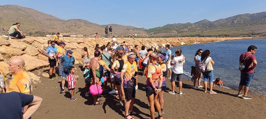 De forma paralela, Francisco Segura y el equipo del sector Mar, cruzaban a nado los mismos puntos de inicio y fin que el Sector Tierra, con un total de 17 kilómetros, más de lo previsto por las fuertes corrientes en el Parque Regional de Calblanque.