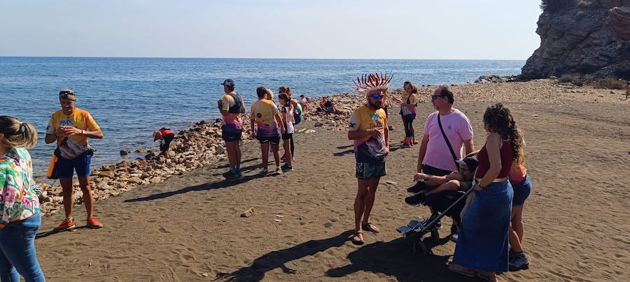 Joaquín Susmozas, con su hija Julia (padece una enfermedad rara), encabezó al grupo que salió desde Cala Reona por tierra hasta Portmán, siendo la playa de San Bruno el enclave al que llegaron los que habían partido pro mar desde el mismo lugar. Al final, éxito total de la tercera edición de esta iniciativa que ayuda a la labor de Fundación Tiovivo y que culminó con una muy agradable convivencia en el antiguo muelle portmanero. En la foto, protagonistas de esta aventura con el edil Daniel Cano, de Defiende la Unión