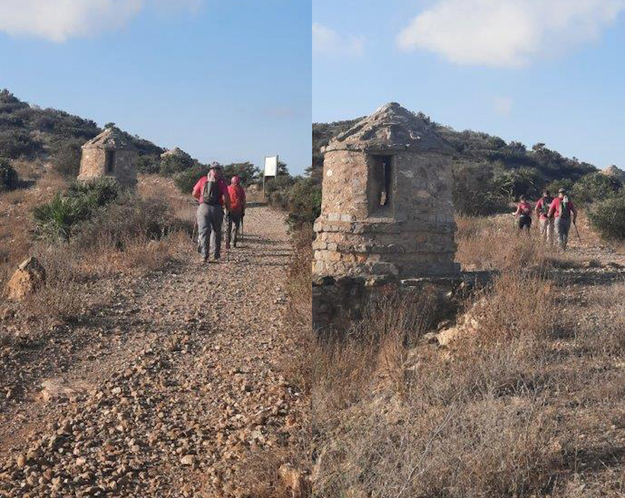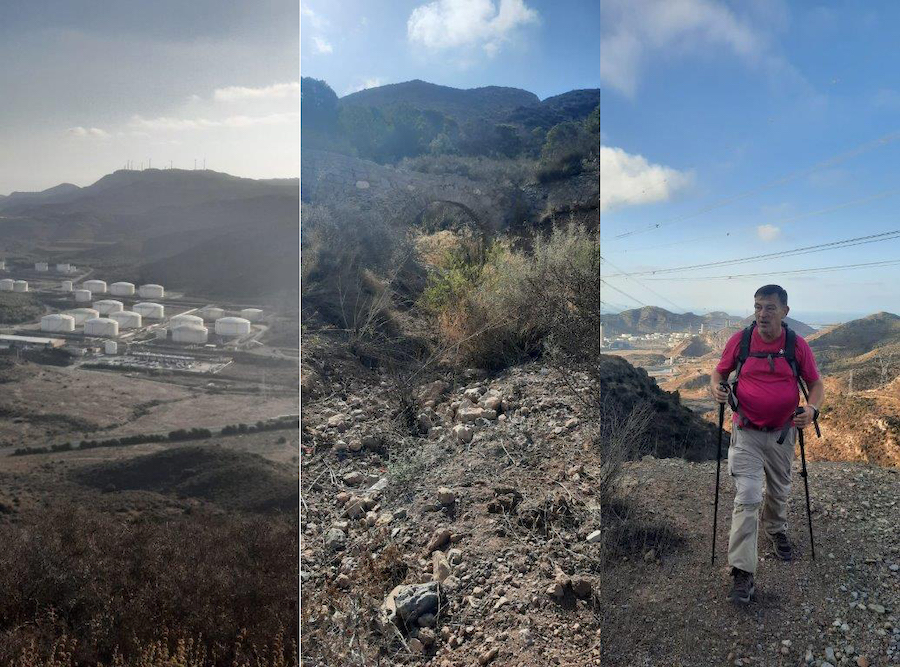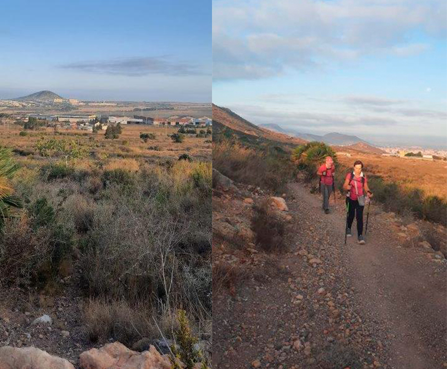 En ese lugar observaron a trabajadores desbrozando el monte, por debajo de las lineas de alta tensión que salen de Escombreras, para prevenir posibles incendios. La marcha continuó con bajada por el barranco de Orfeo y regreso al punto de partida.