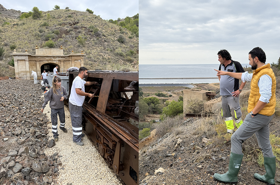El alcalde de La Unión, Joaquín Zapata, ha visitado el entorno minero del Túnel “José Maestre”, en Portmán, para conocer de primera mano los trabajos de conservación y pintura realizados por el alumnado del Programa Experiencial “La Unión avanza en formación y empleo joven”.Esta actuación forma parte del itinerario de construcción del programa y tiene como objetivo la preservación y puesta en valor del patrimonio minero. Los jóvenes participantes han desarrollado tareas de pintura, restauración y protección contra la oxidación en locomotoras, vagonetas y maquinaria histórica situadas en el acceso al túnel y su entorno.
