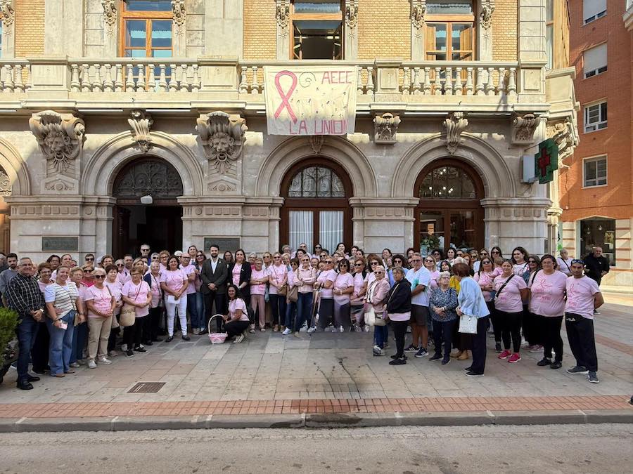 La lectura del manifiesto ha sido un acto celebrado ante la fachada del Ayuntamiento de La Unión organizado por la Asociación Española contra el Cáncer, cuya directiva preside María Hermógenes. Ha estado presente el alcalde, Joaquín Zapata, y ediles de diversas formaciones polícias municipales.