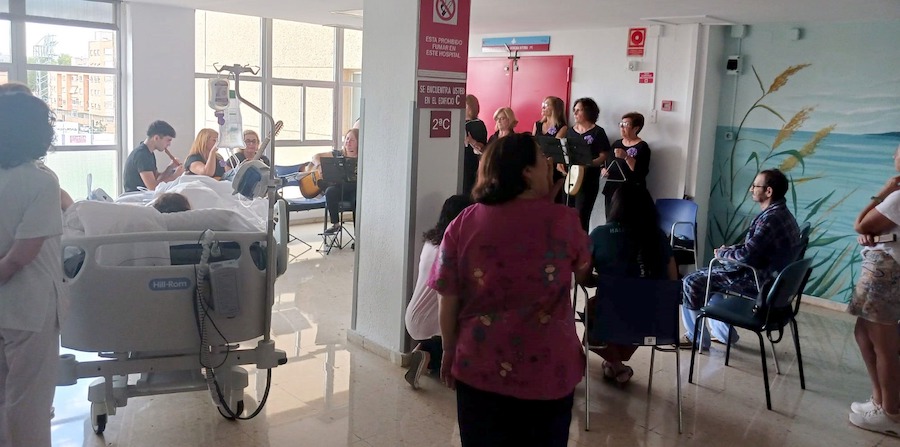 El grupo coral femenino de La Unión actuó ayer en la planta de cuidados paliativos del hospital de Nuestra Señora del Rosell, en Cartagena, en un iniciativa llevada a cabo junto con Fundación FADE.