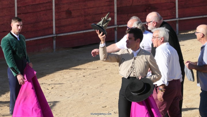 El siguiente capítulo fue la entrega de premios a los toreros Rubén Pinar y Parrita, triunfadores de la edición anterior, siendo Galo Conesa, presidente de la peña taurina unionense y autor del diseño de los trofeos, y el sacerdote Luis Miguel García los encargados de entregarlos.
