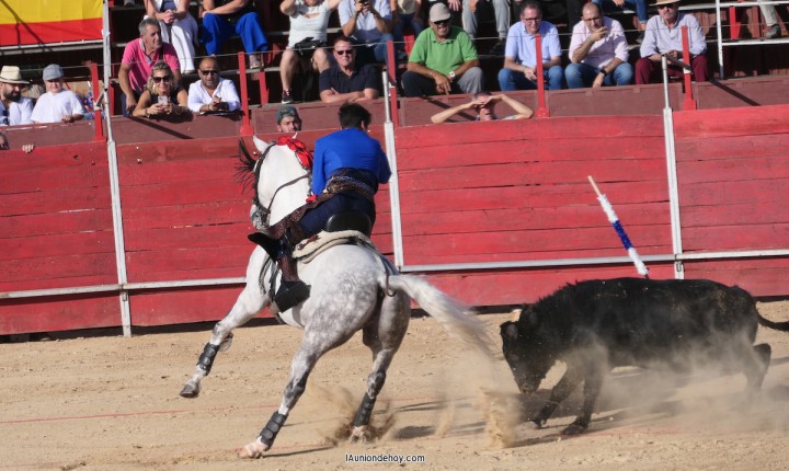 Y comenzó el espectáculo sobre la ocre arena cono el rejoneador Pablo Donat, que lo intentó ante un novillo de la ganadería de Tomás Sánchez de Santa Ana de Albacete que desde el principio no parecía estar 'muy saludable de salud'.
