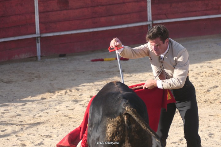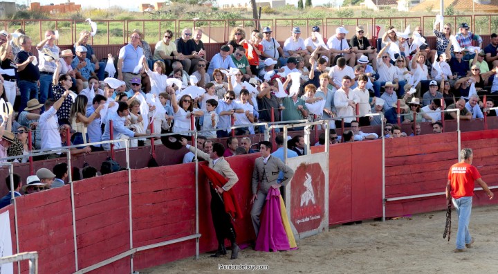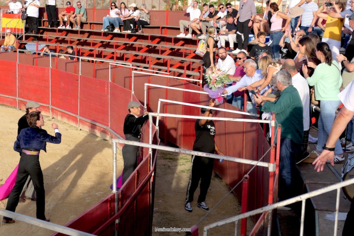 Cerró, también con doble de orejas, Iván de Benito, alumno de la escuela taurina de Murcia y que dio el susto de la tarde al ser derribado por su oponente. No tuvo consecuencias y continuó con sus buenas maneras. Destacar que ninguno de los toreros y novilleros consiguió matar a sus respectivos toros a la primera.