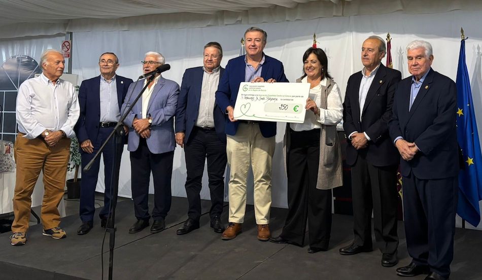 La asociación cultural 'Orden de los caballeros de Santa Bárbara' acudió a la comida a beneficio de la Asociación Española contra el Cáncer de La Unión, donde llevó a cabo la entrega de donativo de 250 euros para ayudar en la investigación contra esta enfermedad.
