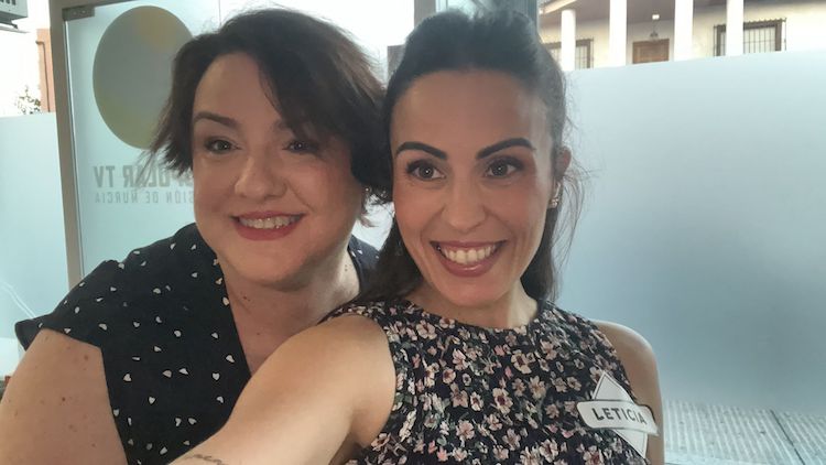 Las unionenses Leticia y María y estarán esta noche en la televisión autonómica de ‘La7’participando en ‘El pinchazo’, concurso de cultura general de la Región de Murcia que presentan Fran Sáez y ‘Gauchito’, a los que se observa en la foto con las dos concursantes de La Unión.