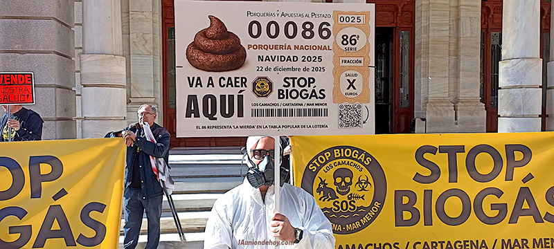 “Compraron suelo barato al Sepes para crear una ZAL (Zona de Apoyo Logístico) y ahora lo destinan a una planta de biogás”. Así lo explica MC (pinchar aquí), que, junto a ‘Sí Cartagena’, asociaciones y vecinos, ha participado esta mañana en las concentraciones de protesta que han tenido lugar ante la sede de la APC en la plaza de Héroes de Cavite y ante el Palacio Consistorial de Cartagena. Los manifestantes, además de las pancartas, han llevado una representanción de una ‘mierda’ y un décimo de lotería que termina en 86, que es también ese producto. El cántico utilizado ha sido: ‘Cartagena despierta, la mierda está en tu puerta’. En el registro de entrada de documentos de la APC se ha presentado un escrito pidiendo al ente que preside Pedro Pablo Hernández que rechace esa cesión de espacio “al tener como destino una instalación perjudicial para la salud de los vecinos”, indicaba a esta redacción un manifestante.
