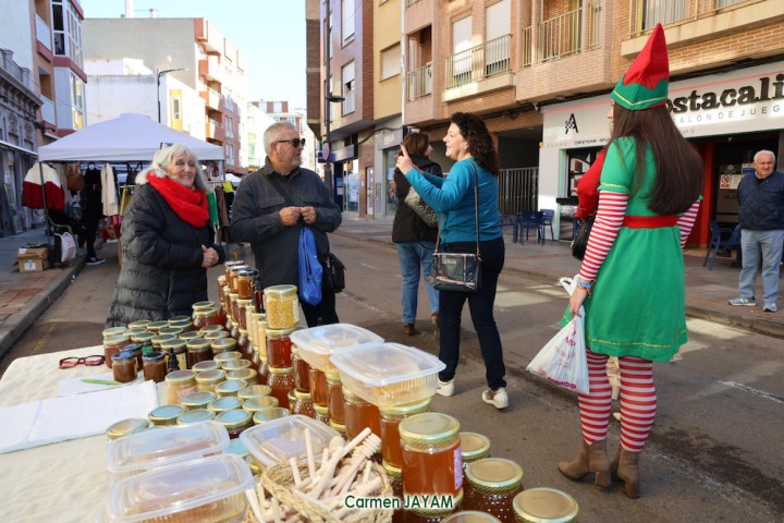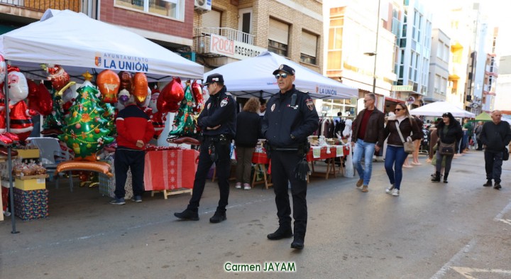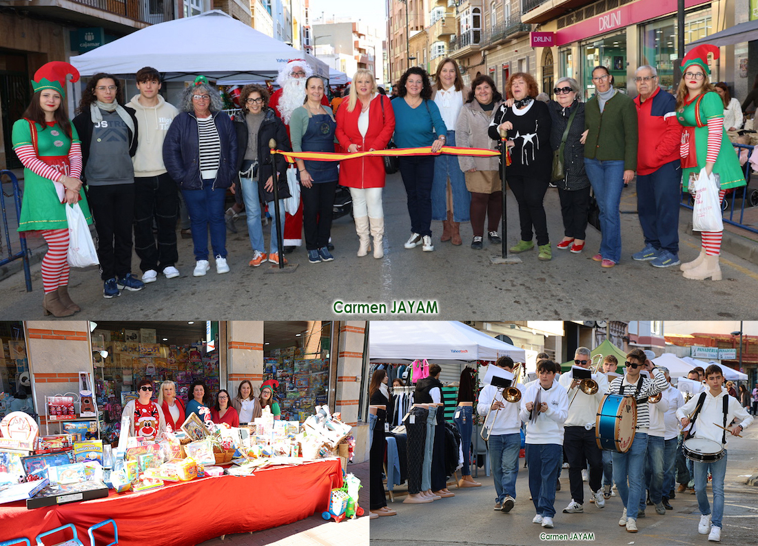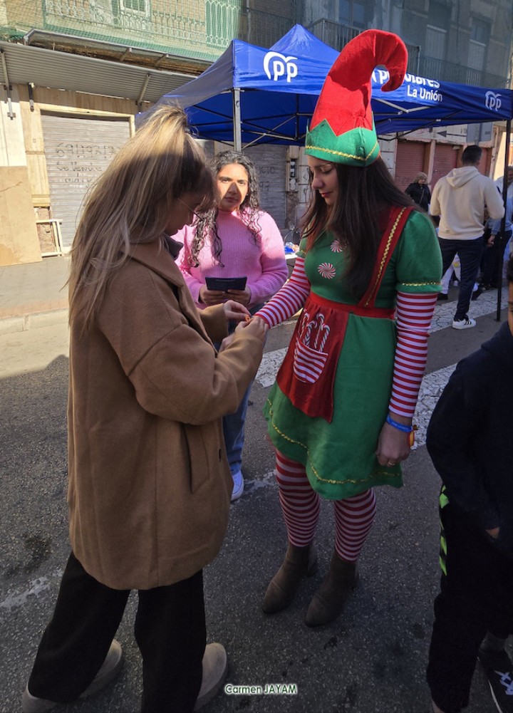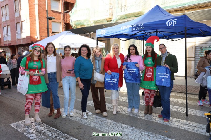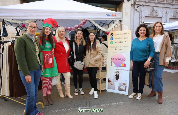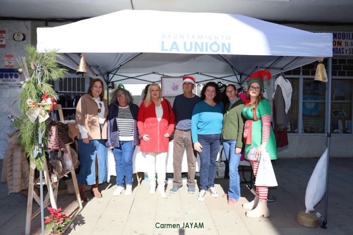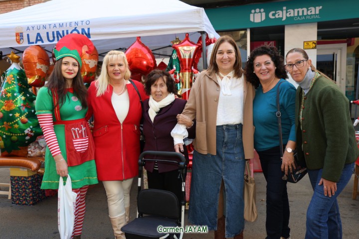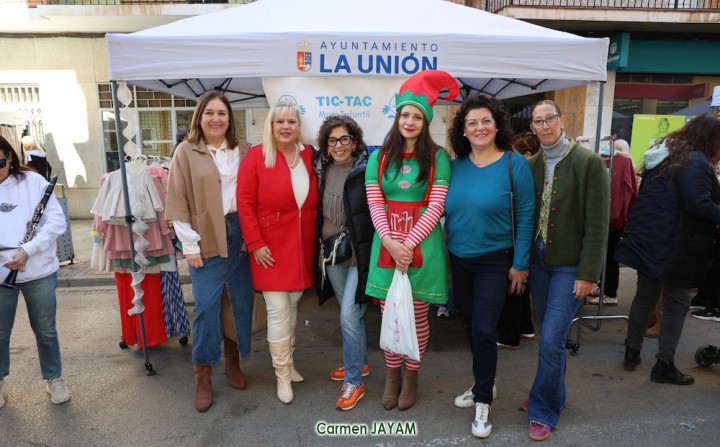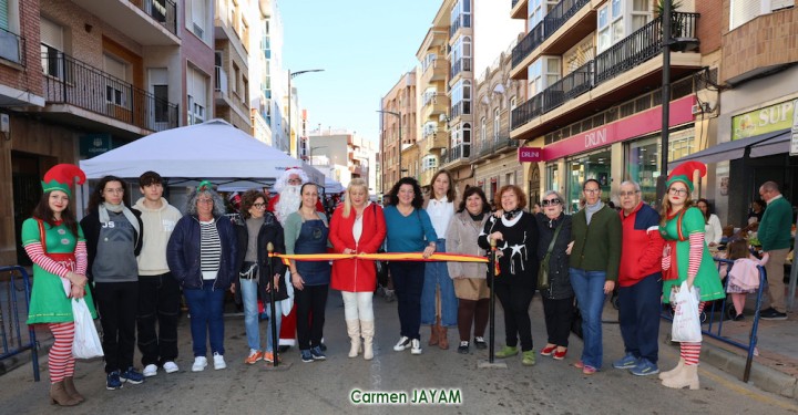 El corte de cinta llevado a cabo esta mañana por las ediles Teresa López, Damiana García y Loly Mendoza, acompañadas por varios de los comerciantes que se han instalado y los personajes de Papá Noel y dos elfas, ha abierto esta mañana de forma oficial la feria para compras prenavideñas de la ciudad de La Unión.