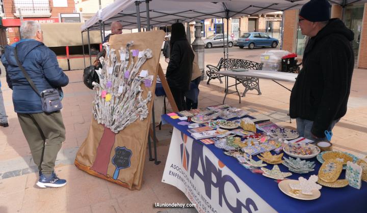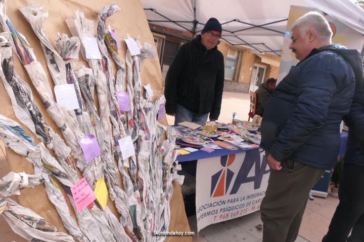 La feria, en una mañana fría y soleada, ha contado también actividades, como talleres de memoria, chapas, pintura y cerámica, además de gerontogimnasia y charlas. También había pulseras por la inclusión y un singular y artístico árbol para potenciar las capacidades que tienen las personas que tiene algún tipo de discapacidad.
