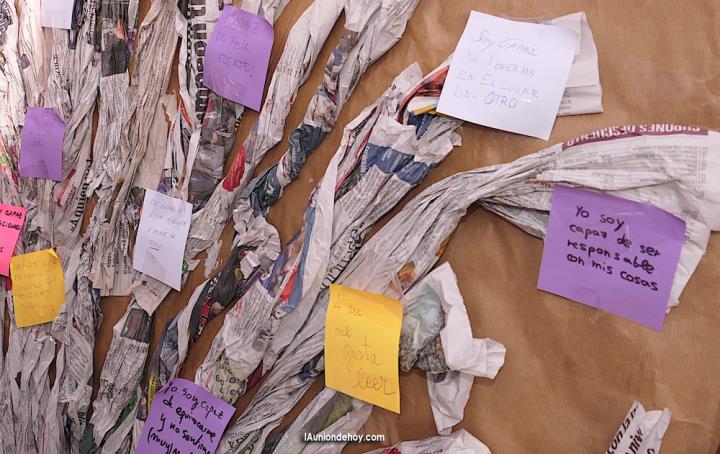 Instalado por 'Apices' para recoger respuestas a la pregunta '¿Y tú de qué eres capaz?' ha sido novedad en la feria celebrada en La Unión con motivo del 'Día internacional de las personas con discapacidad', que ha contado con ocho estand de diversas entidades y numerosas actividades, además de una lectura colectiva de un manifiesto bajo el lema: '40 años de España en la Unión Europea. Sin lo social no hay Europa'.