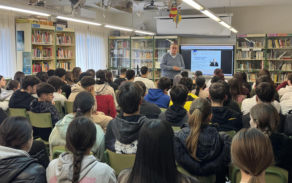 Francisco Bernabé Pérez ha visitado el IES María Cegarra Salcedo en la víspera del ‘Día de la Constitución’, dentro de una actividad organizada por el centro para acercar de manera pedagógica y cercana los valores, el origen y la vigencia de nuestra Carta Magna a los estudiantes.