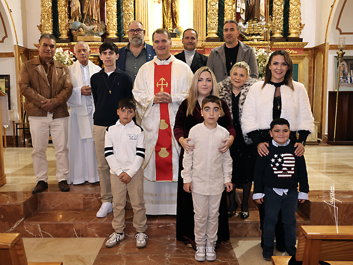 Grupo de jóvenes (con sus padres) que se han confirmado en la religión católica en durante el acto celebrado en la iglesia de Santiago Apóstol de Portmán, que fue oficiado por Manuel Verdú, vicario episcopal del Campo de Cartagena, quien estuvo acompañado por el párroco, Andrés Vera.