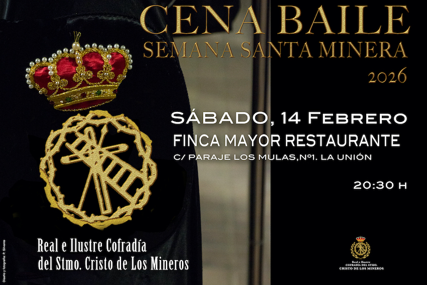 1. La Real e Ilustre Cofradía del Santísimo Cristo de los Mineros celebrará su tradicional y anual cena baile el 14 de febrero, a las 20.30 horas, en Finca Mayor de La Unión.