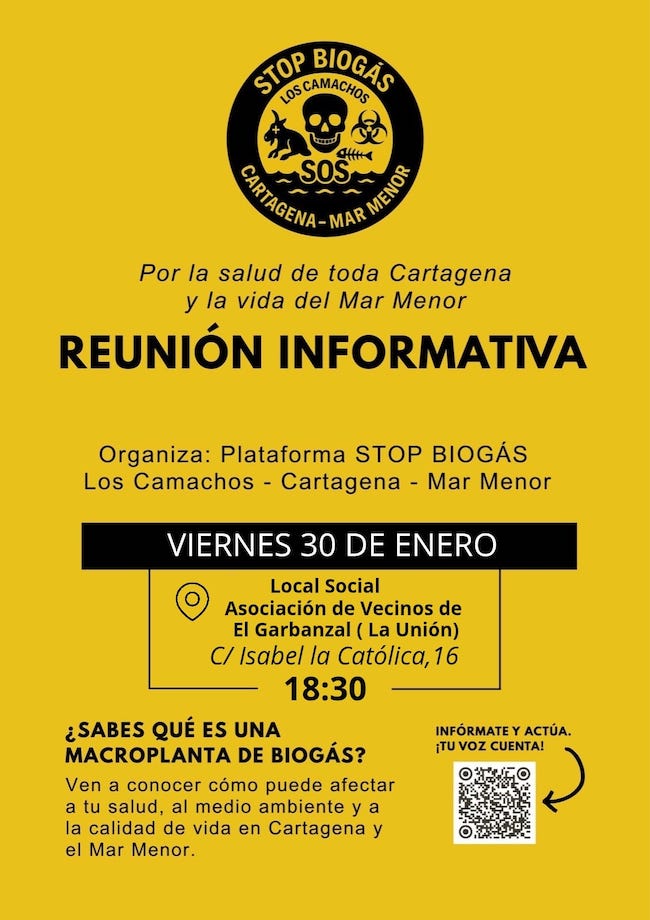 La plataforma que se opone a su instalación en Los Camachos, al considerar que afectará de forma negativa a los residentes en poblaciones como Roche, entre otros, convoca a los vecinos para resolver sus dudas para el viernes 30 de enero en el local social de El Garbanzal.