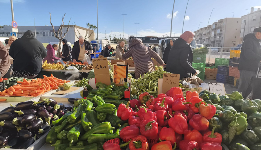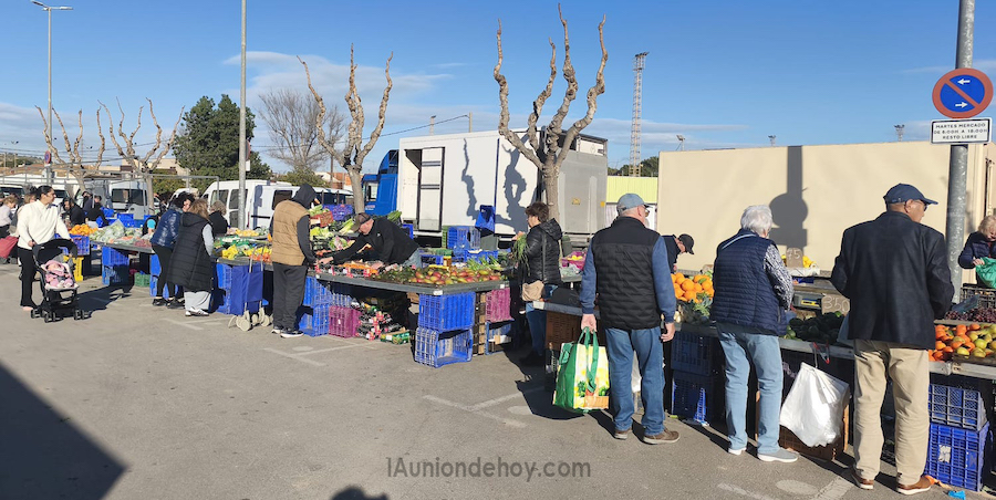 Los puestos del mercado de los martes en la ciudad de La Unión han tenido que prescindir de los toldos debido a la fuerza del viento, que ha provocado, entre otras incidencias, que volasen bastantes prendas. El aviso naranja por fenómenos costeros y viento también abarca a miércoles y jueves, con riesgo también de lluvia. El ayuntamiento informa que se han suspendido las actividades deportivas al aire libre y también se anula la salida de 'Camina con tu enfermero' para mañana.