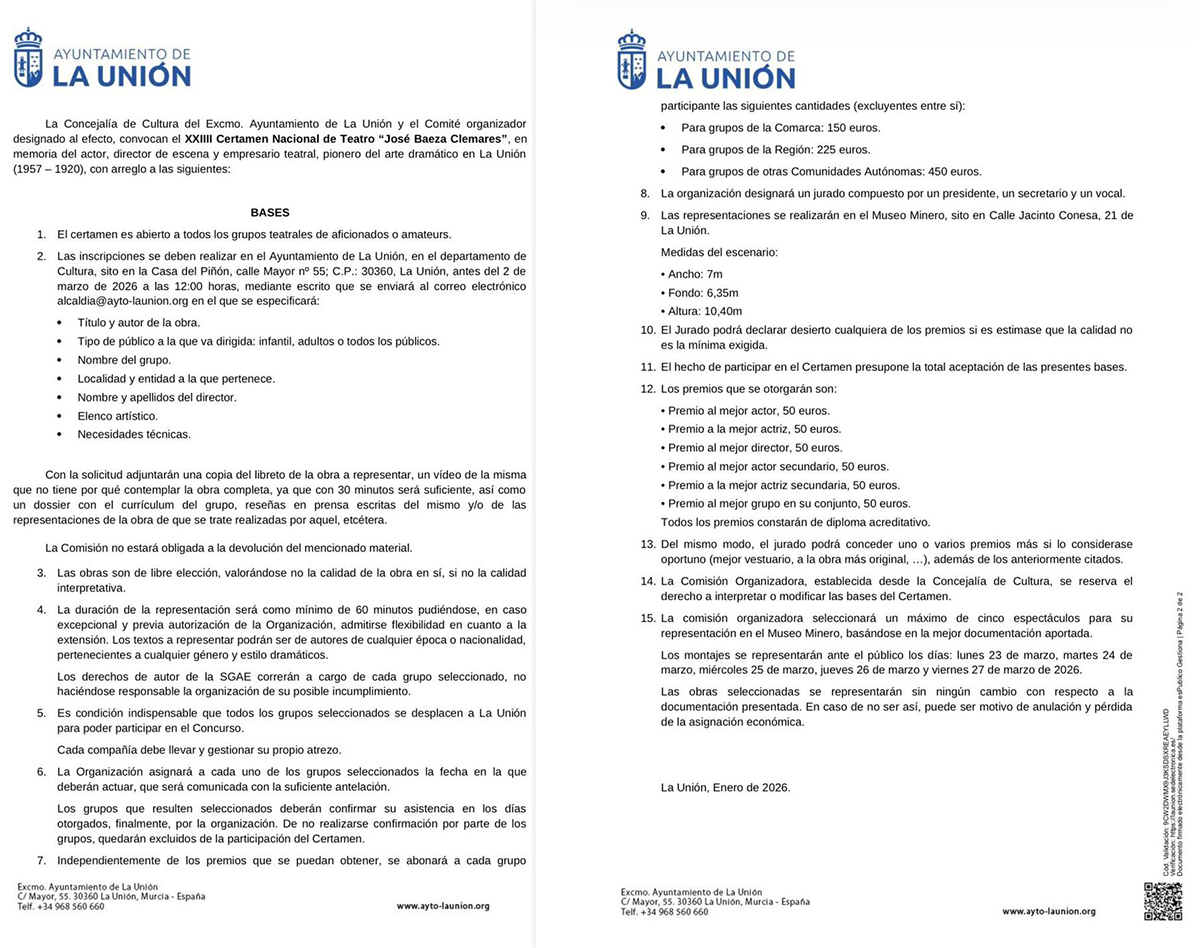 3. La 24 edición del certamen teatral 'José Baeza Clemares' da a conocer sus bases de participación